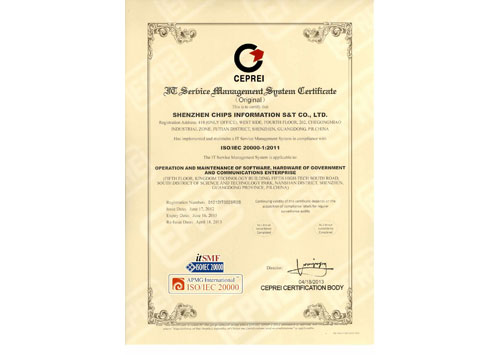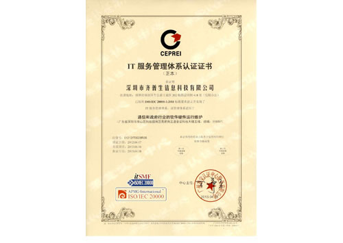 • IT服務(wù)管理體系認(rèn)證證書(英文)
