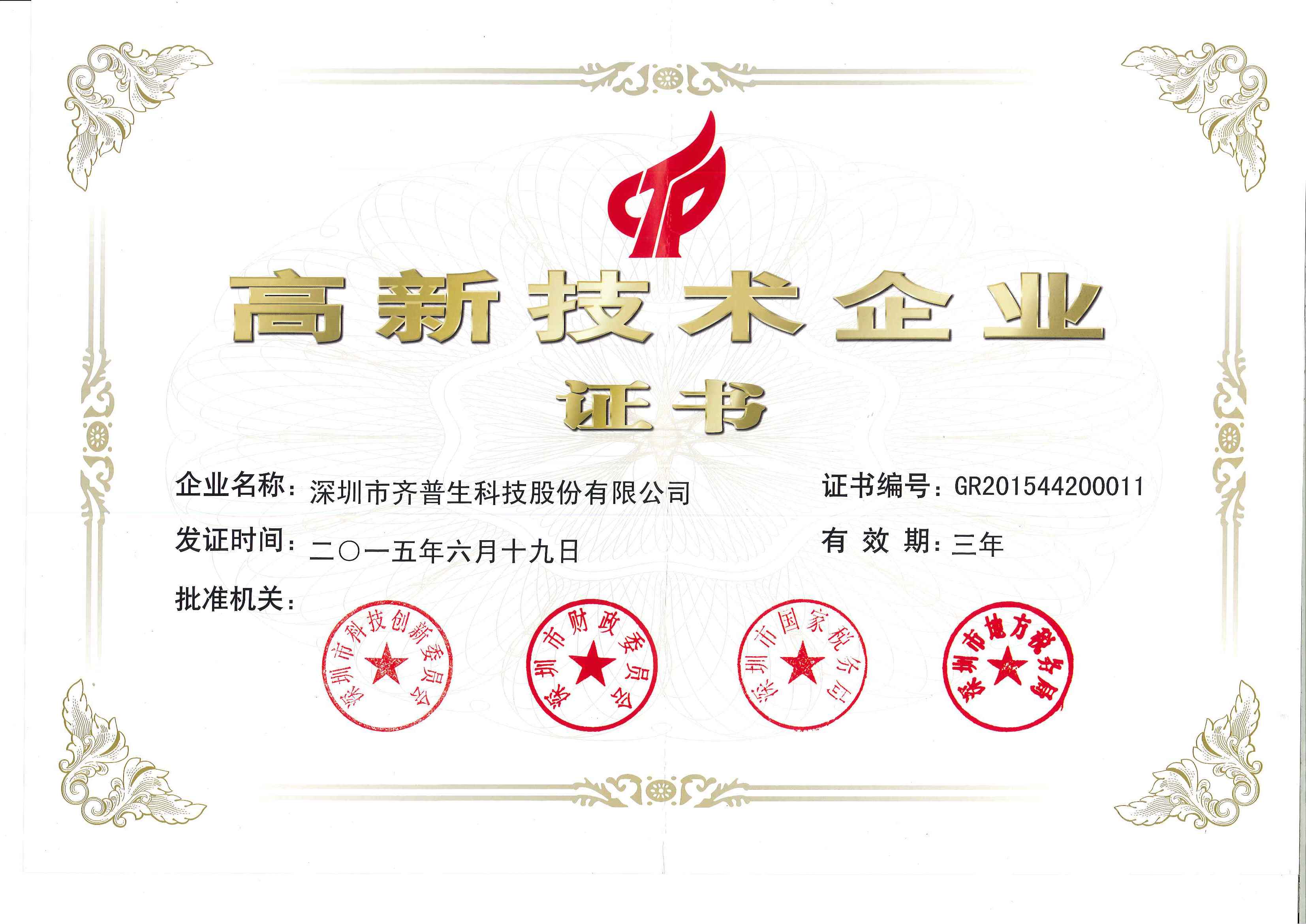 • 國(guó)家級(jí)高新技術(shù)企業(yè)證書