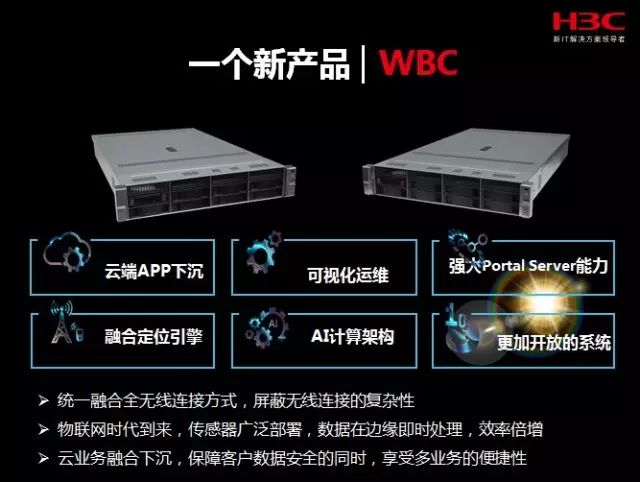 新華三在此次大會上,正式對外發(fā)布了WBC(Wireless Beneath Cloud Controller無線多業(yè)務(wù)控制器),作為新華三無線領(lǐng)域的重磅新品面向市場,融合多種無線技術(shù),具備六大特性:云端APP下沉、可視化運維、強大Portal Sever能力、融合定位引擎、AI計算架構(gòu)和更開放的系統(tǒng)。面對萬物互聯(lián)時代,傳感器廣泛部署,WBC不僅可以實現(xiàn)數(shù)據(jù)在邊緣即時處理,還可以使得效率倍增;此外,WBC還將運維、認(rèn)證、位置大數(shù)據(jù)、SaaS應(yīng)用等業(yè)務(wù)下沉到網(wǎng)絡(luò)中,在保障客戶數(shù)據(jù)安全的同時,更享受多業(yè)務(wù)處理的便捷性。